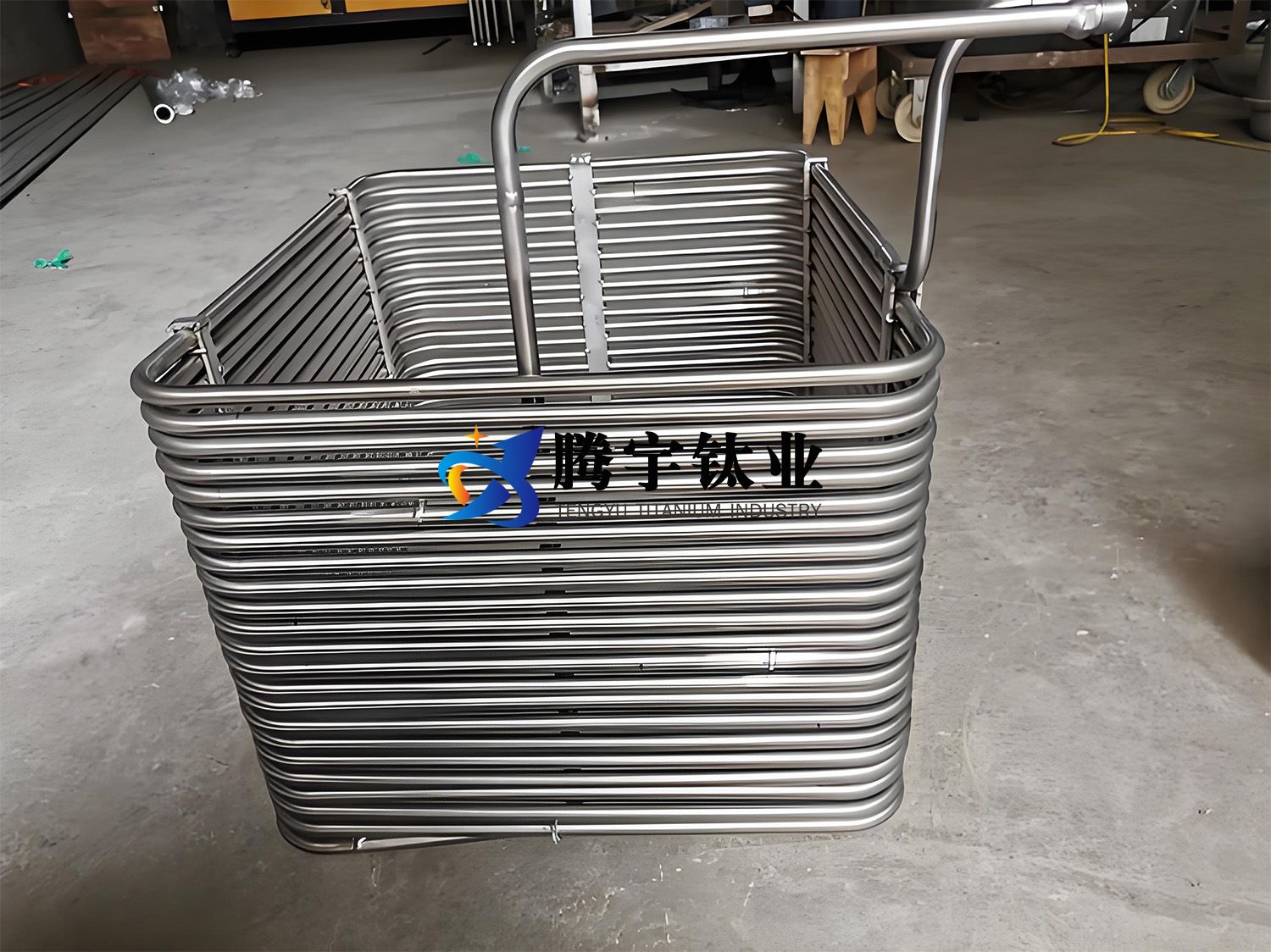 钛盘管以工业纯钛(TA1/TA2)及钛合金(如TC4)为材质,经冷热弯管、TIG焊接及热处理工艺制造,具备耐强腐蚀(pH 0-14、海水及氯离子环境)、高强度(σ_b≥345MPa)、轻量化(密度4.5g/cm³)及生物相容性(医疗植入物应用)特点,执行GB/T 3625、ASTM B338标准,适配化工反应釜(酸洗/碱液换热)、海洋平台热交换(耐海水腐蚀)、核电站冷凝器(抗高温蠕变≤600℃)、医疗灭菌设备(Ra≤0.8μm电解抛光)等场景,表面处理包括酸洗钝化(提升抗蚀性)、微弧氧化(50μm陶瓷层增强耐磨),保养需定期中性清洗剂冲洗、检查焊缝及钝化膜完整性,选购建议优先TC4钛合金(高温高压场景)、医疗领域选择TA1/TA2纯钛(生物相容性认证)、海洋工程需控制氯离子浓度(<200ppm)。腾宇钛业将不同材质及应用场景的钛盘管表面处理方法和保养方案,通过以下多表呈现: